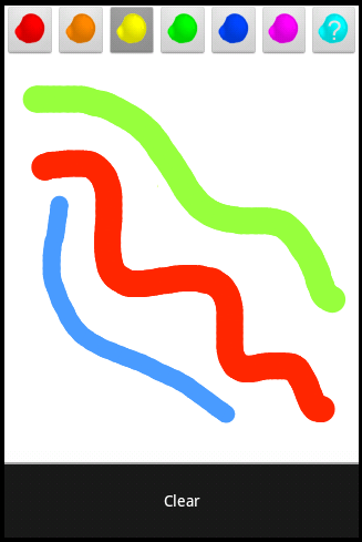This application allows to draw using most of touchscreen area. The application interface is simple and usable by kids of ages above 1.5 years.