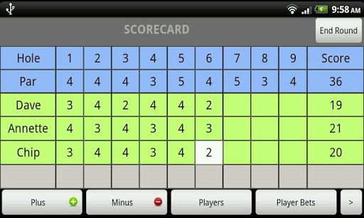 - Auto-populates par for each hole and allows you to simply add or subtract from par