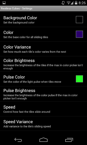 Firefly puzzle free is a live wallpaper featuring tiles randomly moving around your screen. These tiles move randomly to spots that are not yet occupied. They are restless, ever moving. The tiles pulse with your chosen color and return to a new or static color, giving your background and ever shifting array of colors to mesmerize you!