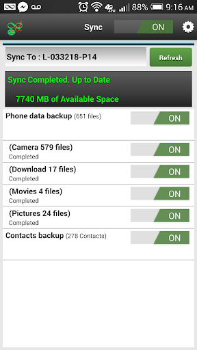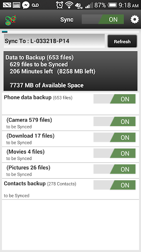 The phone data gets synced up to the PC automatically on the WIFI network.
