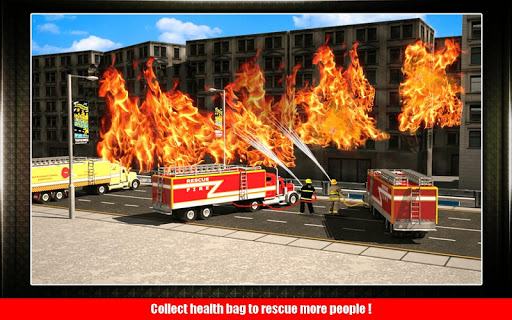 Ever dreamt of being a fireman? Here is your chance to be the hero! rush to save lives! You can reduce the death toll by rushing to the rescue location! Drive an awesome fire truck and save the people from hazard. You have the modern fire extinguishing equipment at your hand! Your job is to reach the fire emergency destination at the minimum possible time!