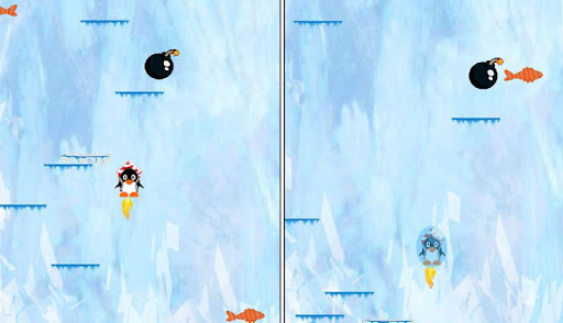 Guide the penguin through the sky of bombs and collect magical flying fish!