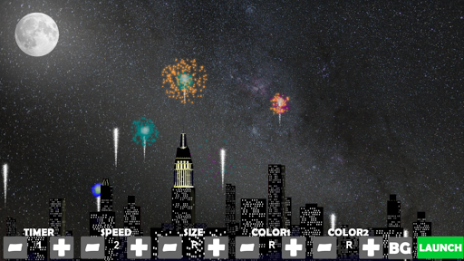Create your own Firework Show! Set timers, speed, size and color for each rocket.