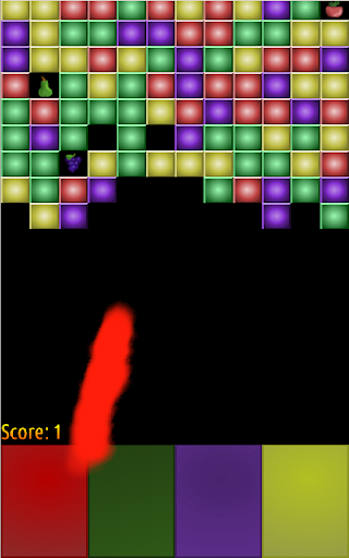 Carefully fire colored shots to make other blocks fall down, but do not hit any fruit by an explosion of the same color!