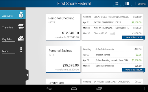 Bank with confidence - First Shore Federal’s Mobile App allows you to manage accounts from your mobile device...anytime, anywhere. Now it’s easy to do banking 24/7, right from your Android.