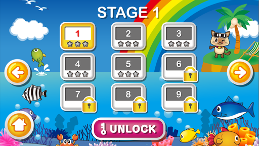 Touch fish to catch them. Cat eats only fish with correct answers.