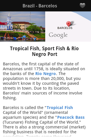 There are 3,000 species of fish - about one-third of the world's total - in the Amazon. This app extensively covers the most exciting fish in the world, the peacock bass species, plus 13 other major sportfish species that anglers may catch in these waters. To successfully fish the remote and massive areas with their challenging logistics and minimal information available from those experts with angling experience throughout the Basin is nearly impossible without the help of this guide.