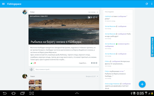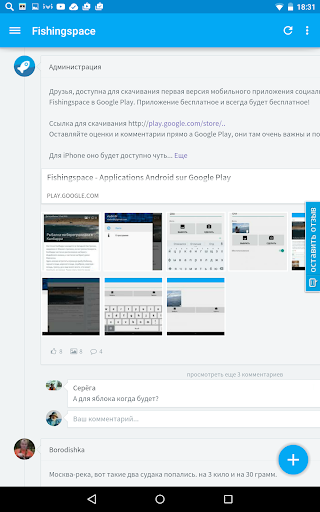 Приложение fishingspace позволяет общаться с другими рыбаками не отрываясь от рыбалки. Прямо с рыбалки вы можете легко делиться сообщениями и фотографиями интересных моментов. Читать сообщения других участников fishingspace, комментировать их и лайкать интересные.