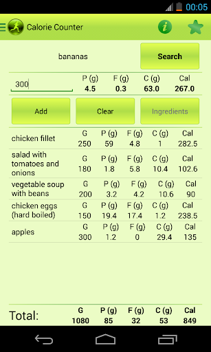 * Calorie counter (for easy meals tracking);