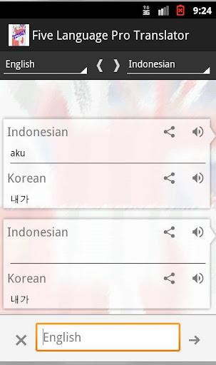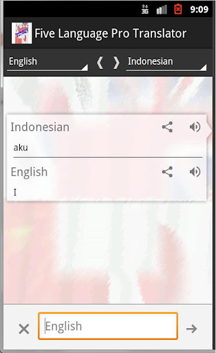 Five Language Pro Translator is a translator machine that made simple and easy to use. This translator application contain of 5 language. There are Indonesian, Chinese, English, Korean, and Japanese. This application is completely free and can be run on your Android devices. This application completed by voice feature that can recite the text you input.