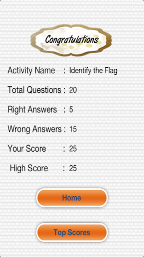 Flags club has the option of testing once knowledge of flags of world countries. Its quiz module test the knowledge based on the flag and related countries. The second set of questions based on the capital one has to identify the country flag. The third based on the national language one has to identify the country flag, and capital to which it belongs to among the given option. The fourth one based on the capital one has to identify the country. The quiz module checks and displays the results page with how many of the questions are right and wrong, and there is a score board.