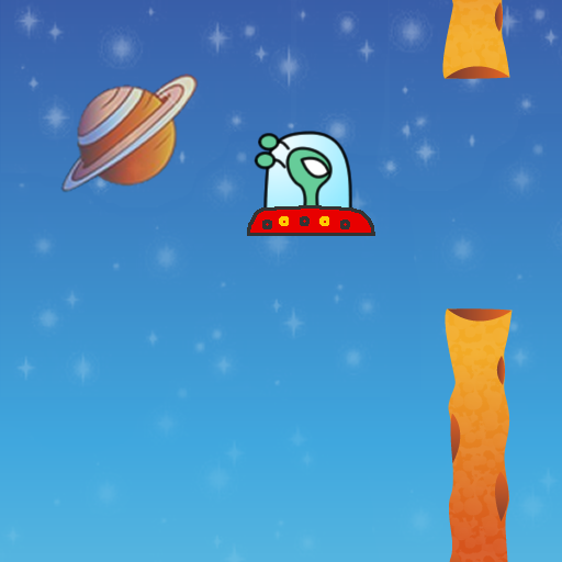 Challenge game where you need to drive the UFO between the spaces between planet walls.