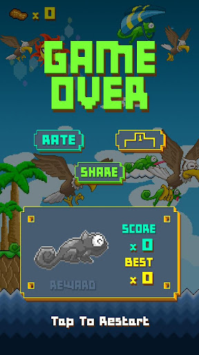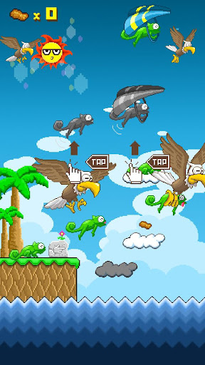 Flappy Chameleon is jumping on the cloud to eat peanut.