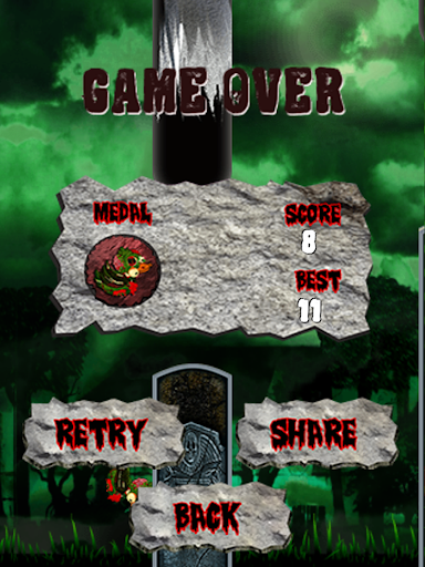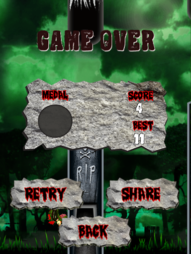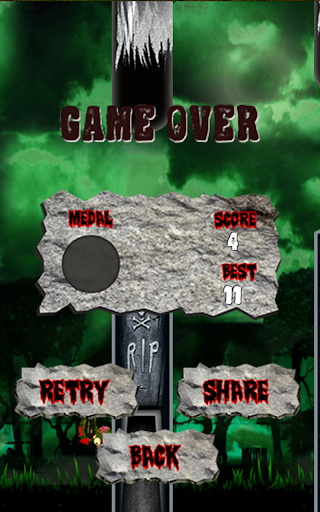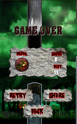 Tap the screen to maneuver the Zombie Flappy Duck through the graveyard. With patience and technique, avoid crashing into the tombstones. The further you make it, the higher level of medals you will earn. Challenge yourself with trying to get a higher score each time you play, but most importantly challenge your friends by trying to beat their high scores!
