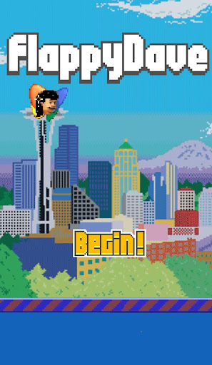 FlappyDave is full of excitement and non-stop Seattle action. With custom handcrafted 8-bit artwork by Stefin, including epic 8-bit skylines from Miles Donovan of thedailyrobot.com! Get more points and more sparklier hair than any other flappy game out there! Get past as many towers as possible to get medals, and maybe a surprise or two! ;)