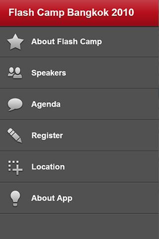 Flash Camp Bangkok 2010 announced by Thai Adobe User Group. Download the application to see event's briefing, speaker's detail, agenda, Event in Google Map, and our sponsors.