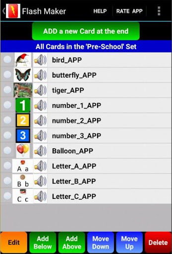 Flash Maker comes with 30 flashcards in 3 different sets. Use the app to make your own Flashcards. Create images and sounds with your device's camera and microphone, use images and sounds from the internet, friends, other sources or use the images and sounds supplied with the App.
