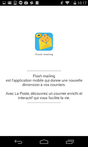 Flash mailing est l’application de reconnaissance d’images qui rend vos courriers, magazines et prospectus interactifs ! Avec votre Smartphone, prenez votre courrier en photo et découvrez des informations et services complémentaires : jeux-concours, vidéos, demande d’échantillons, appel d’un conseiller, fiches produits, etc. Avec La Poste et Flash mailing, bénéficiez d’une nouvelle expérience qui vous facilite la vie au quotidien.