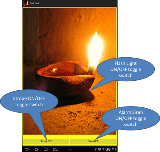 Not only that now you have an Alarm function through which you can raise an alarm and seek help. Flashlight torch app is free of cost.