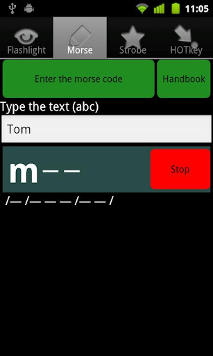 and you can also turn off the LED (in application setting) and then the application will act as a translator MORSE-> TEXT, TEXT-> MORSE displaying anything on the screen,