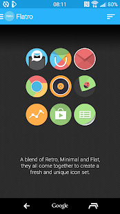 Flatro is a icon set for launchers, a blend of Retro, Minimal and Flat, they all come together to create a fresh and unique icon set.
