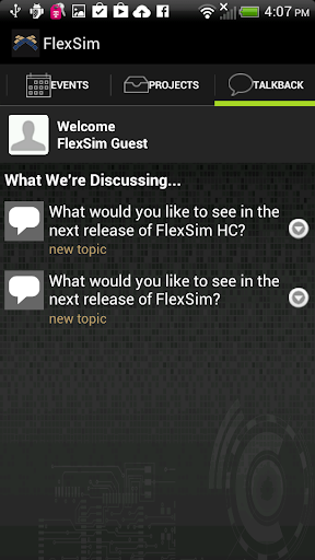 The FlexSim app uses a convenient mobile interface to bring the latest on modeling and simulation:
