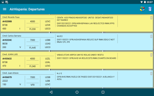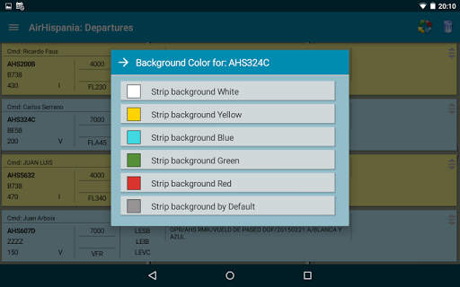 - En Route bay: - VFR traffic blue. - IFR par traffic yellow. - IFR ood traffic green.