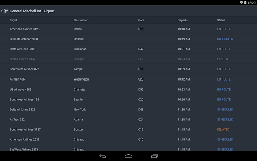 FlightTrack 还提供有关航班出发和延误的实时信息、包含航班最新消息的及时推送通知,以及登机口号码(如有相关信息)。对机场不熟悉?FlightTrack 详细的航站楼地图可帮助您轻松找到登机口。我们会通知您有关航班取消的信息,如有必要,还可帮助您查找替代航班。