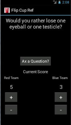 Flip Cup Ref takes the guess work out of your flip cup games. Features include score keeping, rules ,how to play, and question prompts for an interesting way to start off each round.