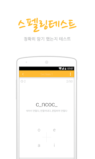 스펠링 테스트 - 빈칸에 맞는 스펠링을 찾아 단어를 완성하는 테스트 모드