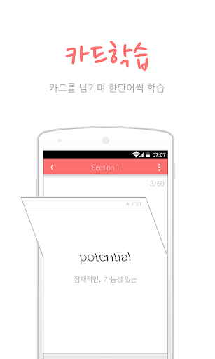 '플립형태의 카드를 넘기면서 뜻을 익히고, 발음테스트를 통해 스피킹 실력 향상'