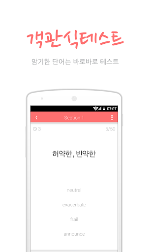 객관식 테스트 - 주어진 뜻에 맞는 단어를 객관식으로 선택하는 테스트 모드