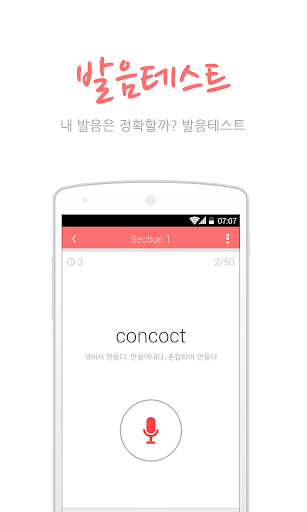 발음 테스트 - 제시된 단어를 발음하여 정확성을 테스트 하는 모드