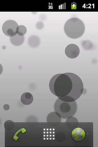 Live wallpaper with orbs of floating lights that slowly move across the screen. Many configuration possibilities, such as background colour, black or white lights, movement speed, number of lights and more. There are also a few pre-set configurations to choose from.