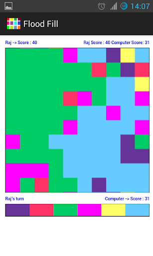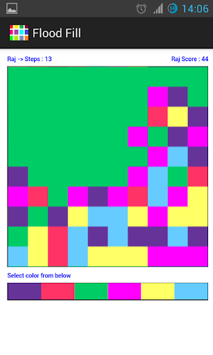 Flood Fill is a fun addictive game. It is a game to place the board with same colors. The goal of the game is to flood the board as fast as possible with the least number of steps.