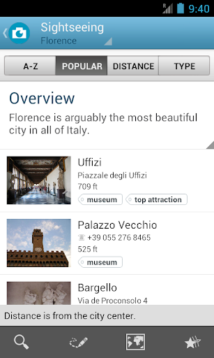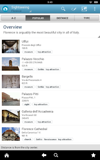 Florence, the city of Michelangelo, with all its sights, monuments, cathedrals and restaurants in one handy guide for your phone.