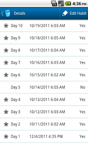 Do you need a little encouragement to keep up with a habit? Let Floss keep track of how successful you have been so far. If you have been successful for several days in a row, Floss will encourage you to continue making positive progress. You'll also earn awards for your success over time!