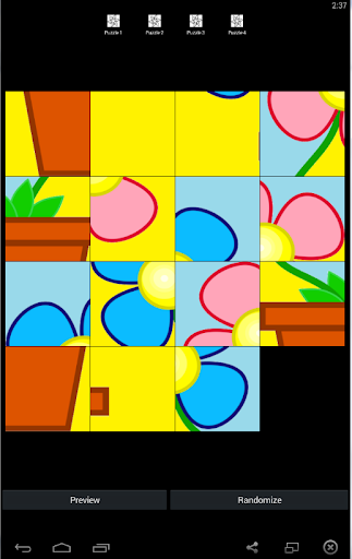 These free flower puzzles have four puzzles each with one easy level. Your child will have fun sliding the pieces around and will enjoy playing our slide puzzles free app.
