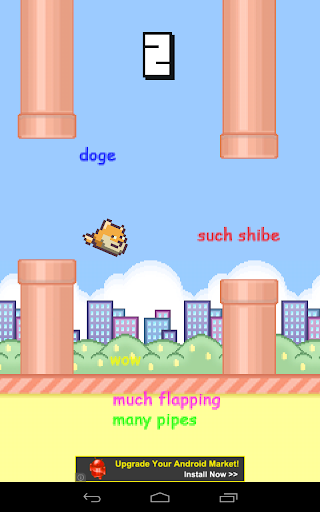 Doge needs your help! Just tap your screen to make the doge fly up in the air! Avoid dangerous pipes, beat your friends high score and have fun together!