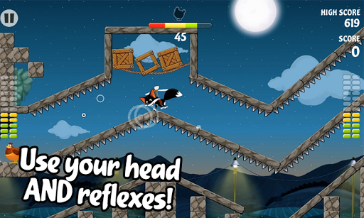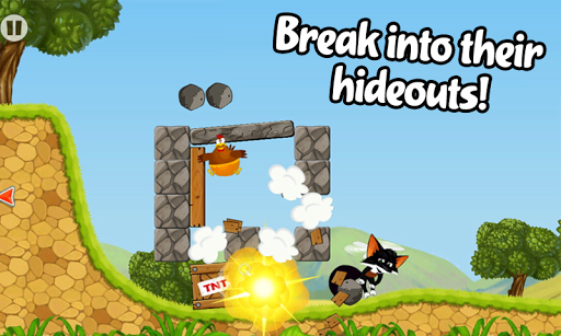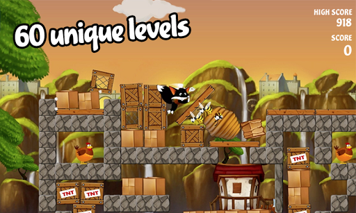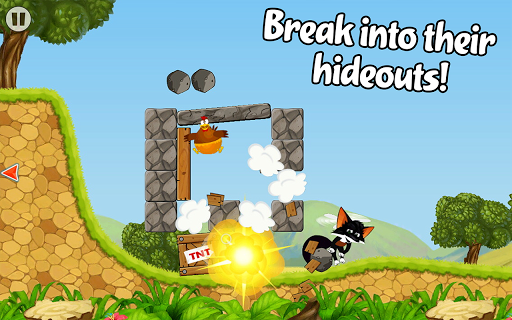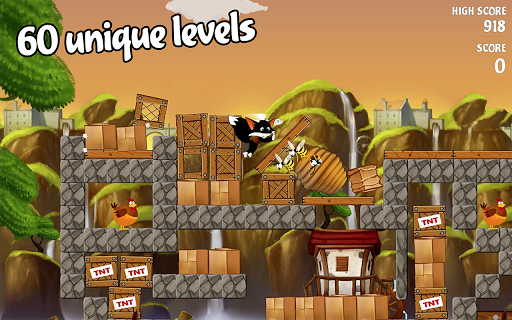 • Use objects like bowling balls to smash barriers and get those chickens.