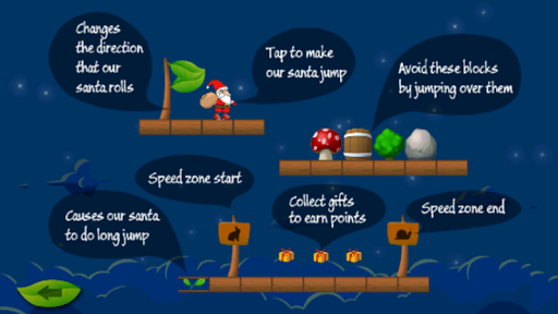 Santa like to collect more gifts for you. But there are many hindrances on the way like lock, toadstool, etc. Please help the Santa by skating and jumping.