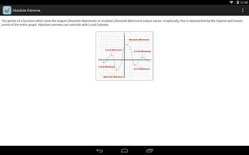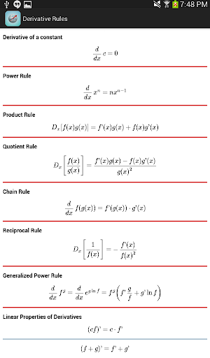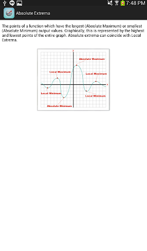 In this app you will find a glossary of over 300 calculus terms - many with illustrations or animations. Also included is an extensive list of derivatives, integrals and formulas.