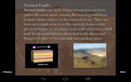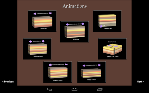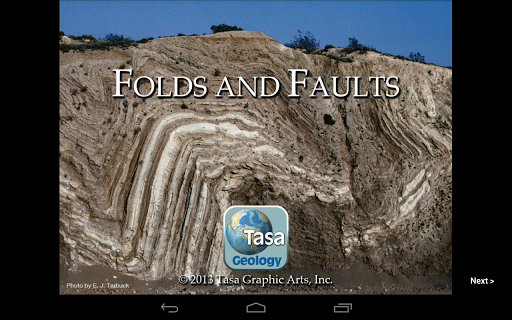 This Earth science app contains illustrations, animations, and photos by Dennis Tasa as well as annotated photos by Michael Collier and Ed Tarbuck. Animations show how folds and faults change the position and angle of rock layers. Illustrations and annotated photographs help to illustrate these concepts and aid in the identification of folds and faults in the field.