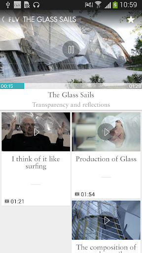 The "Architectural Tour" is a set of different media specifically designed to accompany your discovery of this extraordinary building. Terraces, basin, galleries: select the space where you are and access very special content that will reveal the secrets of Frank Gehry's architecture.