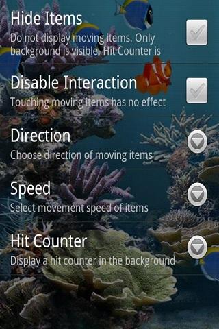 Se puede configurar la velocidad de movimiento en lento, normal y rápido. Añadir un marcador de puntuación. Seleccionar la dirección de los elementos. Activar o desactivar interacción con los elementos. Ocultar los elementos.”.