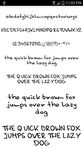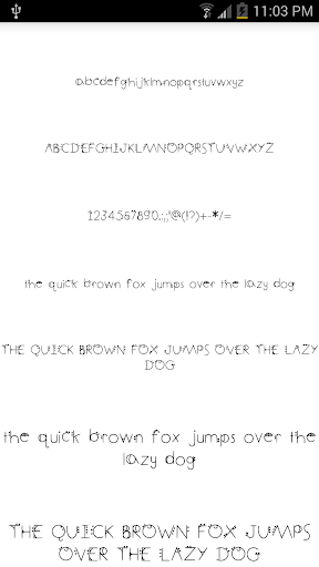 To change fonts on your Samsung Galaxy or HTC Sense 6.0 device, navigate to the display settings in your device's system settings. In the display settings you can change the font style to any of these new fonts for Android. This font pack should work on all Galaxy and Sense 6.0 brand phones and will provide fonts for Samsung Galaxy S3, fonts for Samsung Galaxy S4, fonts for Galaxy Note 3, and HTC One. This app will not work on developer devices, such as the Galaxy Nexus or AOSP Galaxy S4 Google Edition, because it does not have the FlipFont program. Please verify that your phone can change its font. Look for the font style option in the display or screen display section of your device settings. This app is not designed as fonts for android with root and does not require root permission to change your font, nor will it require you to restart your phone.* Also, you will be able to enjoy your fonts for texting and messaging, however the typeface used on your device will not be sent to people that you send a text message to.