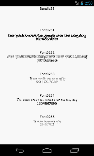 Fonts for Android Samsung Galaxy FlipFont Free have spent the last year gathering free fonts and creating Android flip fonts free to provide users with the ability to change their device’s typeface for free. Using the FlipFont font changer program installed on your Samsung Galaxy phone, you can use this application to customize your device to one of the many beautiful fonts that we have collected. Each Bundle of fonts is a random selection of 5 typefaces that have been optimized for use on Samsung Galaxy Android devices. Please browse through our many FlipFont packs to find the perfect font styles that fits your taste.