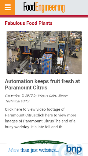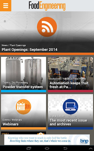 FEmag gives users access to Food Engineering Magazine content via Android smartphones and tablets. Food Engineering is the industry's oldest and most preferred publication serving the $700 billion food and beverage manufacturing market. Food Engineering reports on the latest news and serves the information needs of manufacturing and operation executives in the industry with an emphasis on processing, packaging, food safety, plant operations, material handling and automation. With the FEmag app, users can read articles, browse topics and products, access events, flip through recent magazines digitally and get up-to-date news affecting the food and beverage industry.