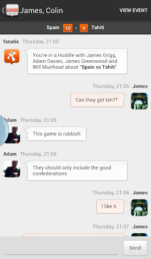 - Huddle. Private instant messenger service that means you can chat with friends as the goals are scored.