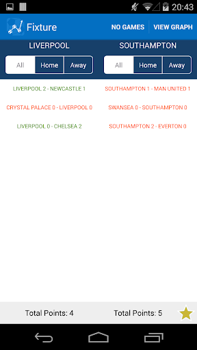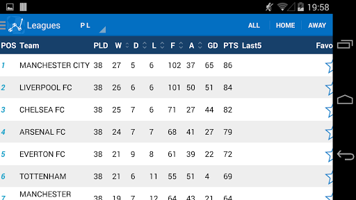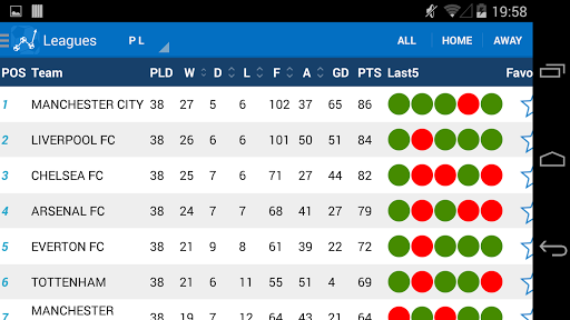- Ability to filter the results by games played, won, lost or drew, goals for, goals against and goal difference as well as a visual representation of the last 5 games!